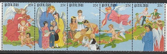 Палау 1988 год. Рождество, сцепка из 5 марок