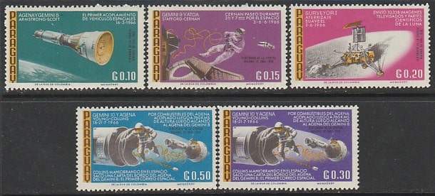 Парагвай 1966 год. Исследование Луны, 5 марок из серии (б/авиа)