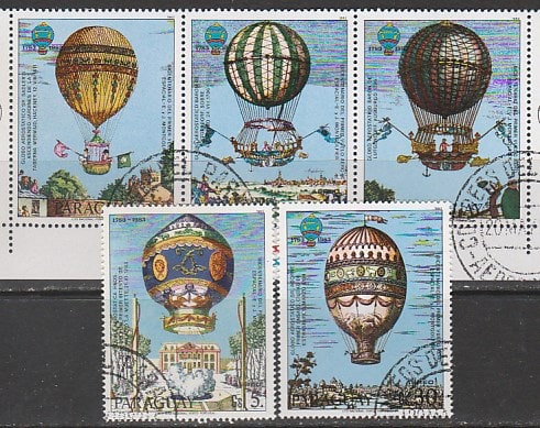 Парагвай 1983 год. 200 лет авиации, 3 марки + 2 купона (гашёные)