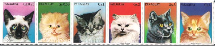 Парагвай 1984 год. Кошки. Сцепка 6 марок (серия без 1 марки)