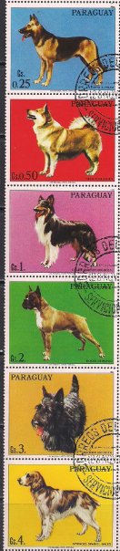 Парагвай 1986 год. Собаки. Сцепка 6 марок (гашеные)