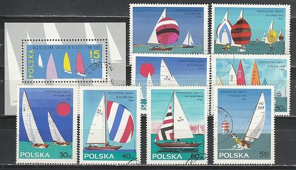 Парусный Спорт, Польша 1965 год, 8 гашёных марок + блок