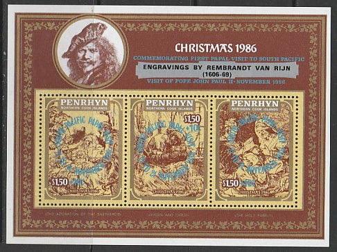 Пенрин (Острова Кука) 1986 год. Посещение Иоанном Павлом II Южной части Тихого океана, НДП, блок.