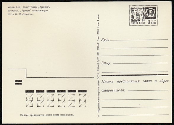 ПК. Алма-Ата. Кинотеатр "Арман", 06.04.1972 год.
