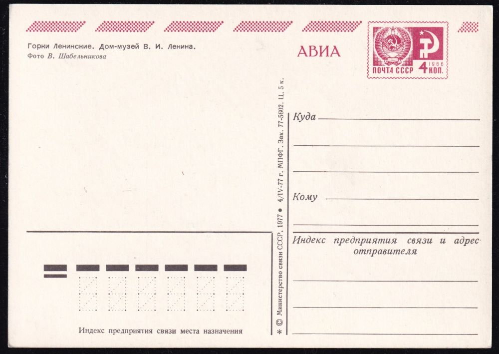 ПК Авиа. Горки Ленинские. Дом-музей В. И. Ленина, 4.04.1977 год