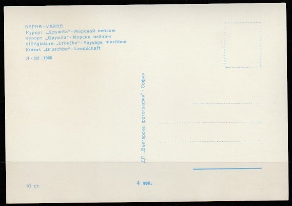 ПК Болгарии. Варна. Курорт "Дружба". Морской пейзаж, 1960 год.
