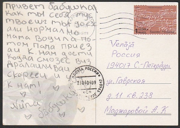 ПК Финляндии. Радужные поздравления. Розы, п/почту в 2004 году.