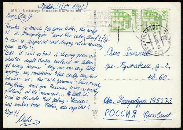 ПК ФРГ. Немецкое Единство 3 октября 1990 год, п/почту.