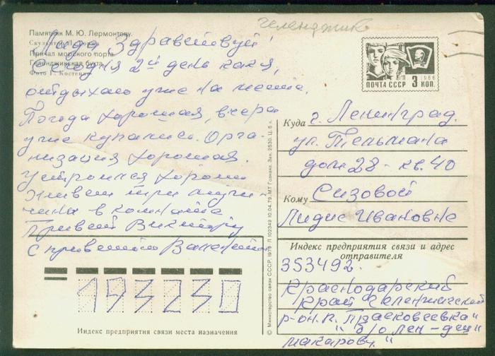 ПК Геленджик. Памятник М.Ю. Лермонтову. Выпуск 10.04.79 г. № 7017