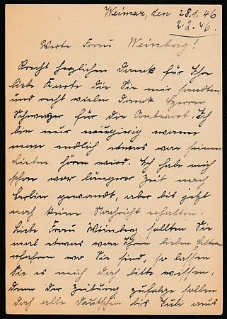 ПК Германии, прошла почту, гашение 29.01.1946 год, Веймар-7 (советская зона оккупации)