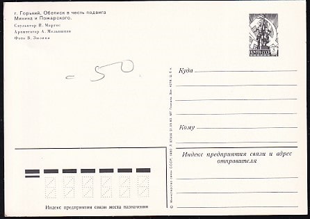 ПК Горький. Обелиск в честь подвига Минина и Пожарского. Выпуск 21.05.1980 год