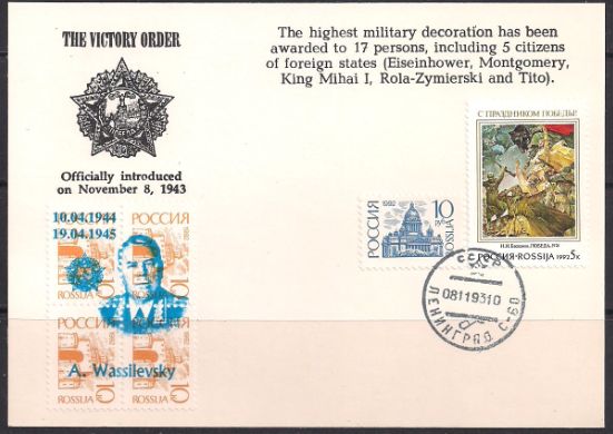 ПК Кавалеры Ордена "Победа" 1993 год. НДП "Маршал А. Василевский", прошла почту