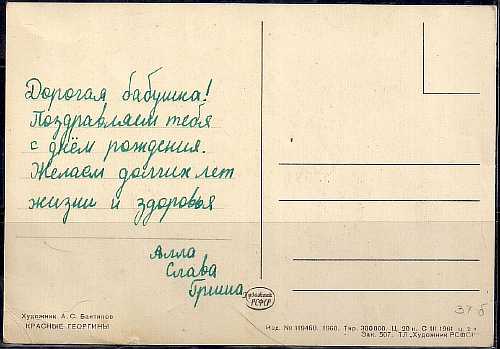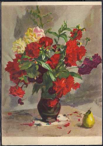 ПК. Красные георгины (худ. А.С. Бантиков), 1961 год