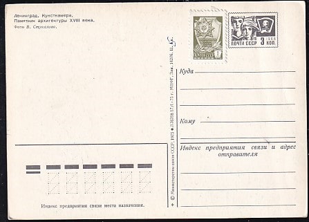 ПК Ленинград. Кунсткамера. Выпуск 17.01.1975 год, доп. марка