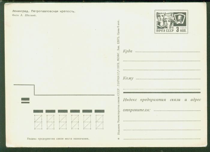 ПК Ленинград. Петропавловская крепость. Выпуск 17.01.73 г. № 2952