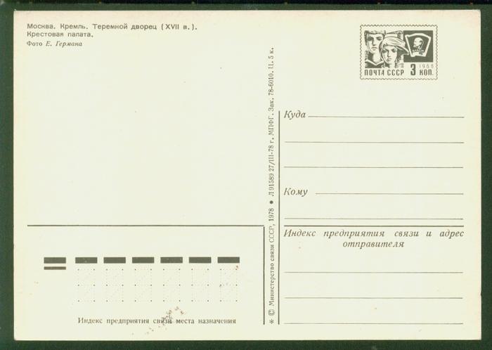 ПК Москва. Кремль. Теремной дворец. Выпуск 27.03.78 г. № 6410