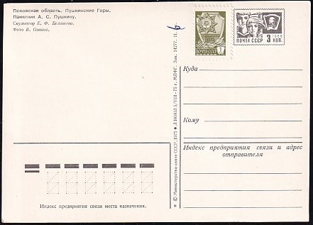 ПК Пушкинские Горы. Памятник А.С. Пушкину. Выпуск 5.08.1975 год