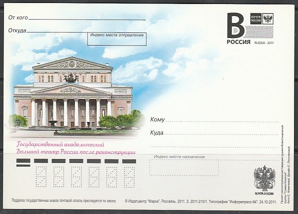 ПК с литерой "В" 2011 год. Москва. Большой театр.