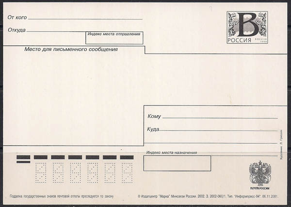 ПК с литерой "В". 9 мая. С днем Победы! 2002 год Выпуск 06.11.2001