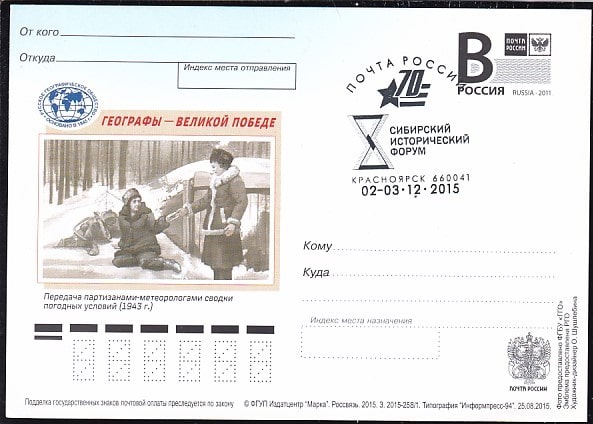 ПК с литерой "В" и СГ "70 лет Победы. Сибирский исторический форум", 2-3.12.2015 год, Красноярск (ВВ)