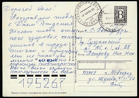 ПК с литерой "В". Поздравляю! 1995 год, прошла почту