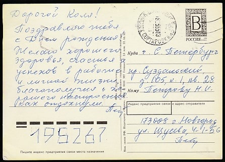 ПК с литерой "В". С Днём рождения! 1994 год, прошла почту