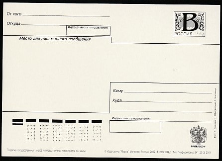 ПК с литерой "В". С Днём Защитников Отечества! Выпуск 23.08.2001 год