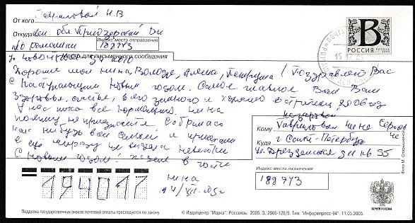 ПК с литерой "В". С Новым Годом! 2005 год, прошла почту