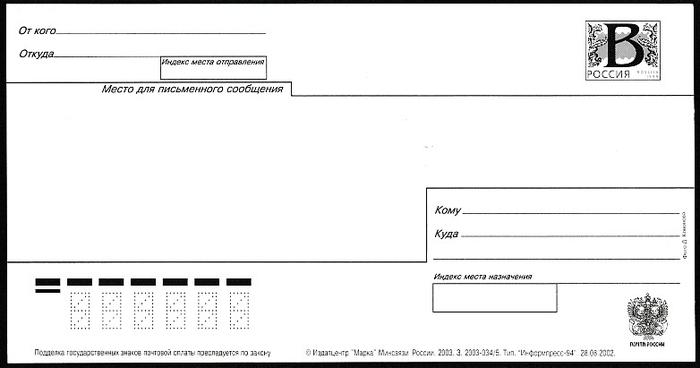 ПК с литерой "В". С праздником Пасхи! Выпуск 28.08.2002 год