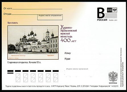 ПК с литерой "В". Ярославль. Кирилло-Афанасиевский монастырь. Старинная открытка, 14.08.2015 год