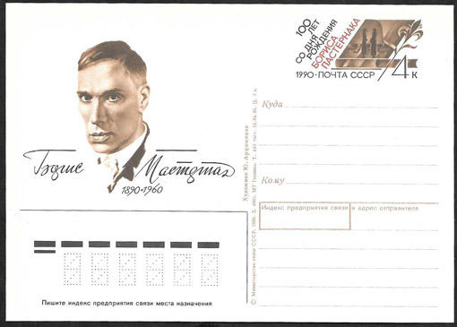 ПК с ОМ 100 лет со дня рождения Б.Л. Пастернака 1990 год. № 197