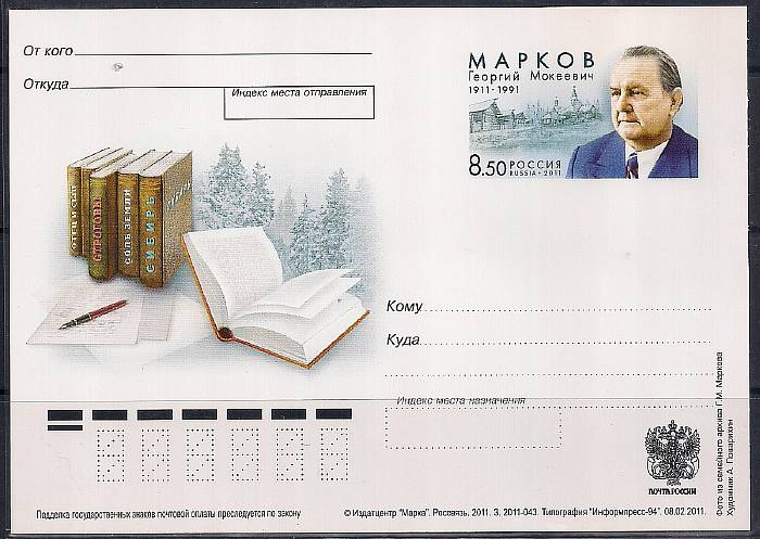 ПК с ОМ. 100 лет со дня рождения писателя Г.М. Маркова, 2011 год, № 220