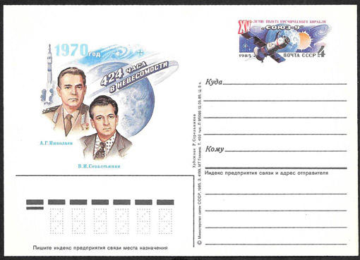 ПК с ОМ 15-летие полета корабля-спутника "Союз-9" 1985 г. № 148 ( 1Ю)