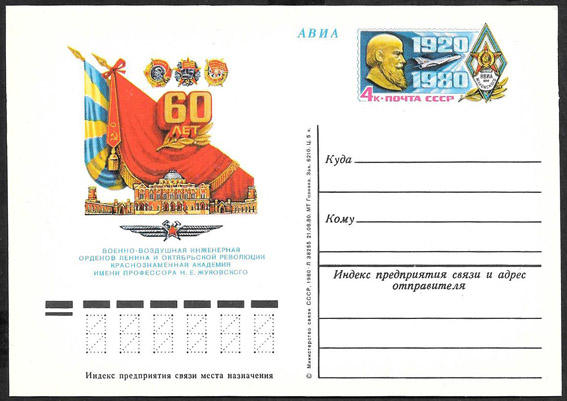 ПК с ОМ 60 лет Военно-воздушной инженерной академии им. Н.Е. Жуковского 1980 год. № 90 ( 2Ю)