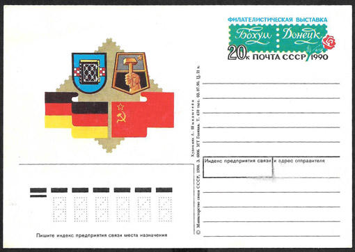 ПК с ОМ Филвыставка "Бохум-Донецк" 1990 год. № 213