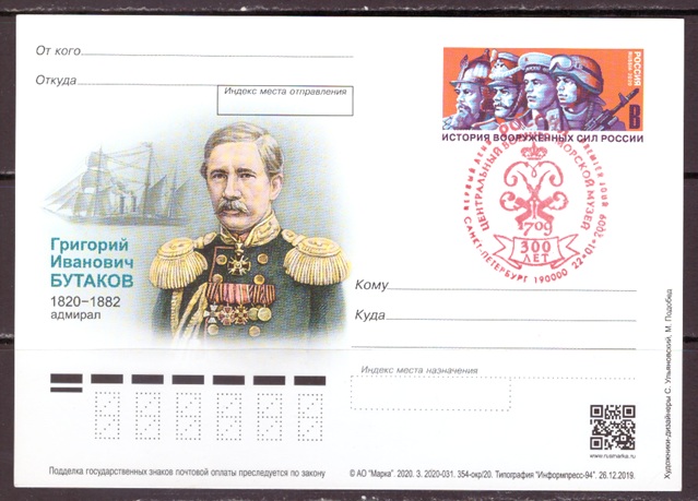ПК с ОМ и спецгашением Центральный военно-морской музей 300 лет, 22.01.2009 год. КРАСНЫЙ