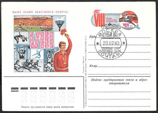 ПК с ОМ с гашением первого дня VIII летняя спартакиада народов СССР 1983 г. № 117