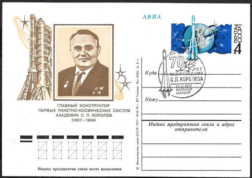 ПК с ОМ со спецгашением 70 лет со дня рождения С.П. Королева 1977 г