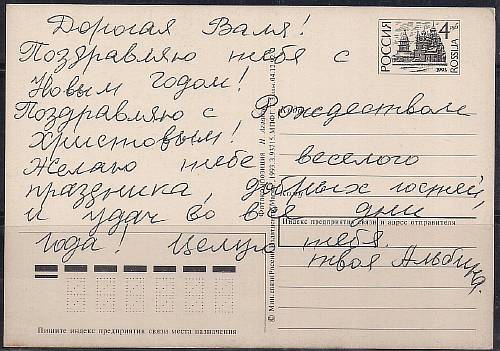ПК. С Рождеством! (худ. Н. Агладзе), 1993 год. почта