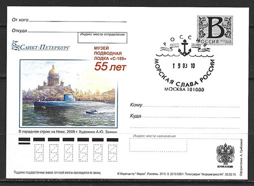 ПК со спецгашением Морская слава России, Москва 19.03.2010 год