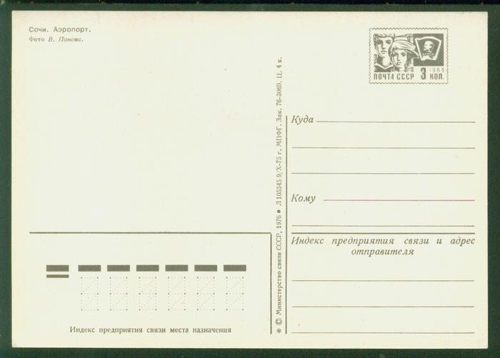 ПК Сочи. Аэропорт. Выпуск 09.10.75 г. № 4696