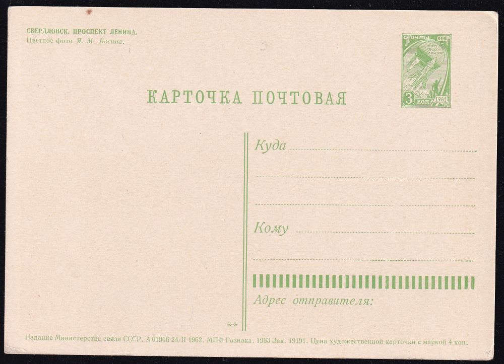 ПК. Свердловск. Проспект Ленина, 24.02.1962 год