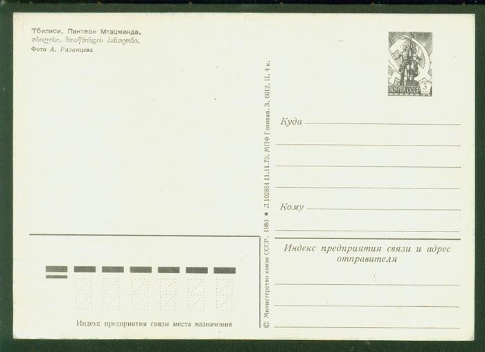 ПК Тбилиси. Пантеон Мтацминда. Выпуск 11.11.79 г. № 523