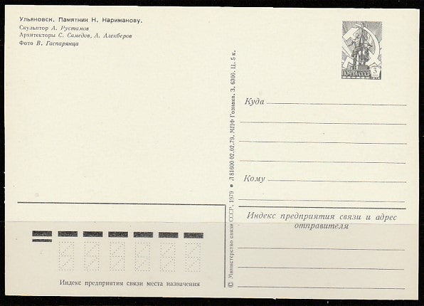 ПК. Ульяновск. Памятник Н. Нариманову, 02.02.1979 год.