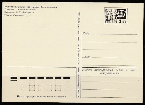 ПК. Ульяновск. Скульптура "М.А. Ульянова с сыном Володей", 26.03.1973 год.