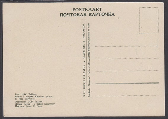 Почтовая карточка. Эстонская ССР. Таллин. Домик Петра I в парке Кадриорг, 1955 год