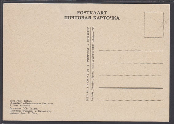 Почтовая карточка. Эстонская ССР. Таллин. Памятник "Русалка" в Кадриорге, 1955 год
