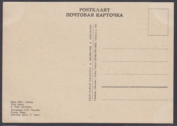 Почтовая карточка. Эстонская ССР. Таллин. Улица Виру, 1955 год