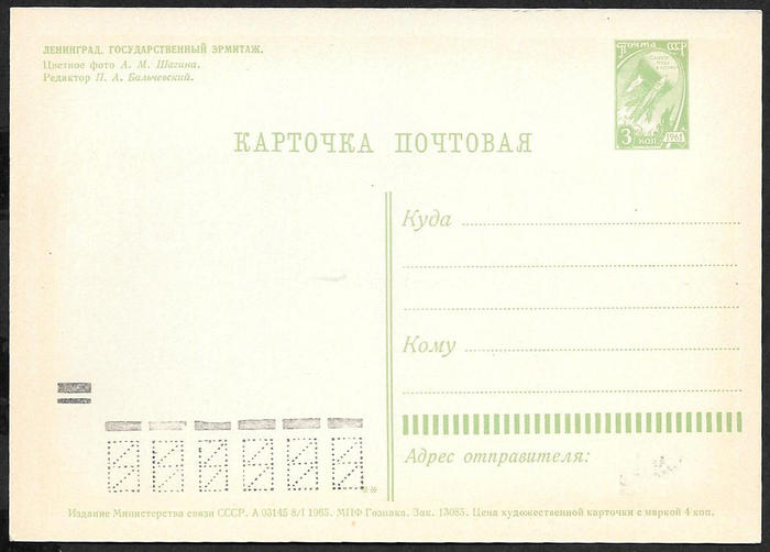 Почтовая карточка. Ленинград. Государственный эрмитаж. 8.01.1965 год