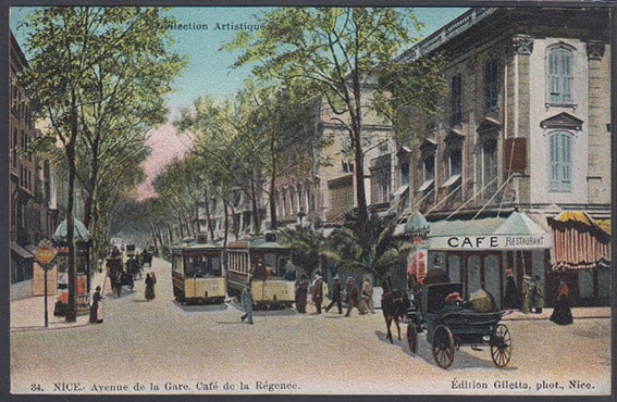 Почтовая карточка. Ницца. Авеню де ла Гар. Кафе Регенс
